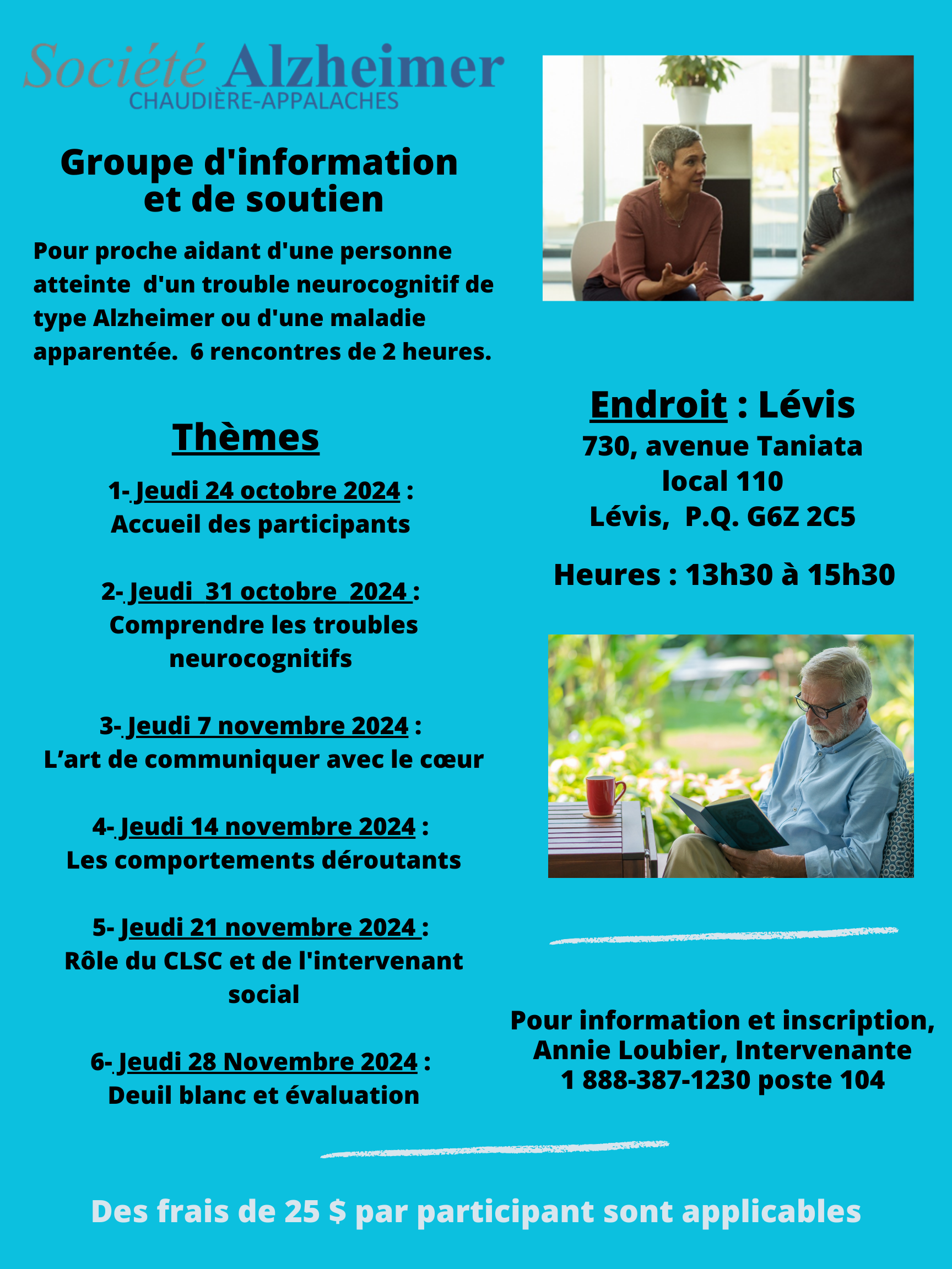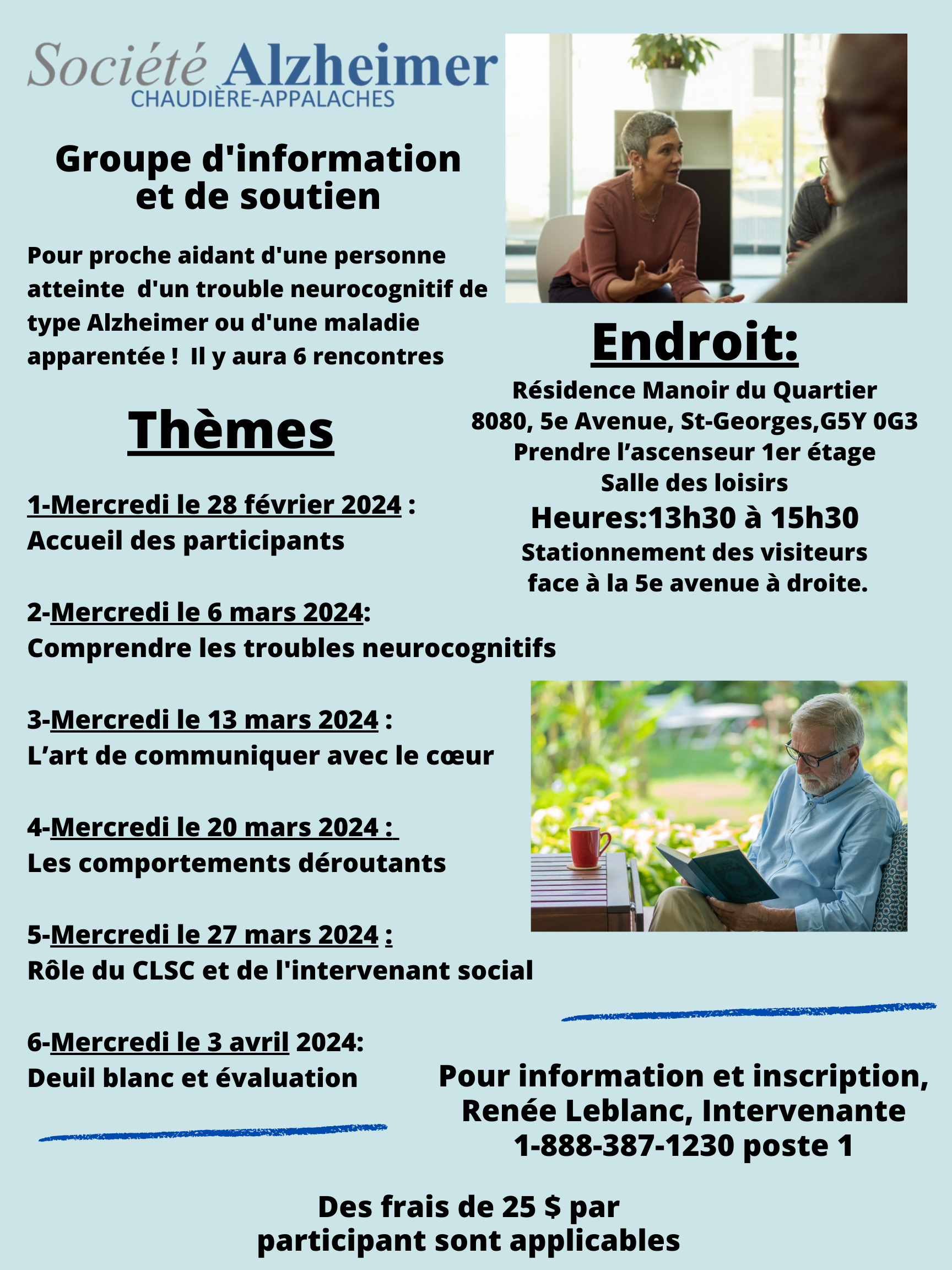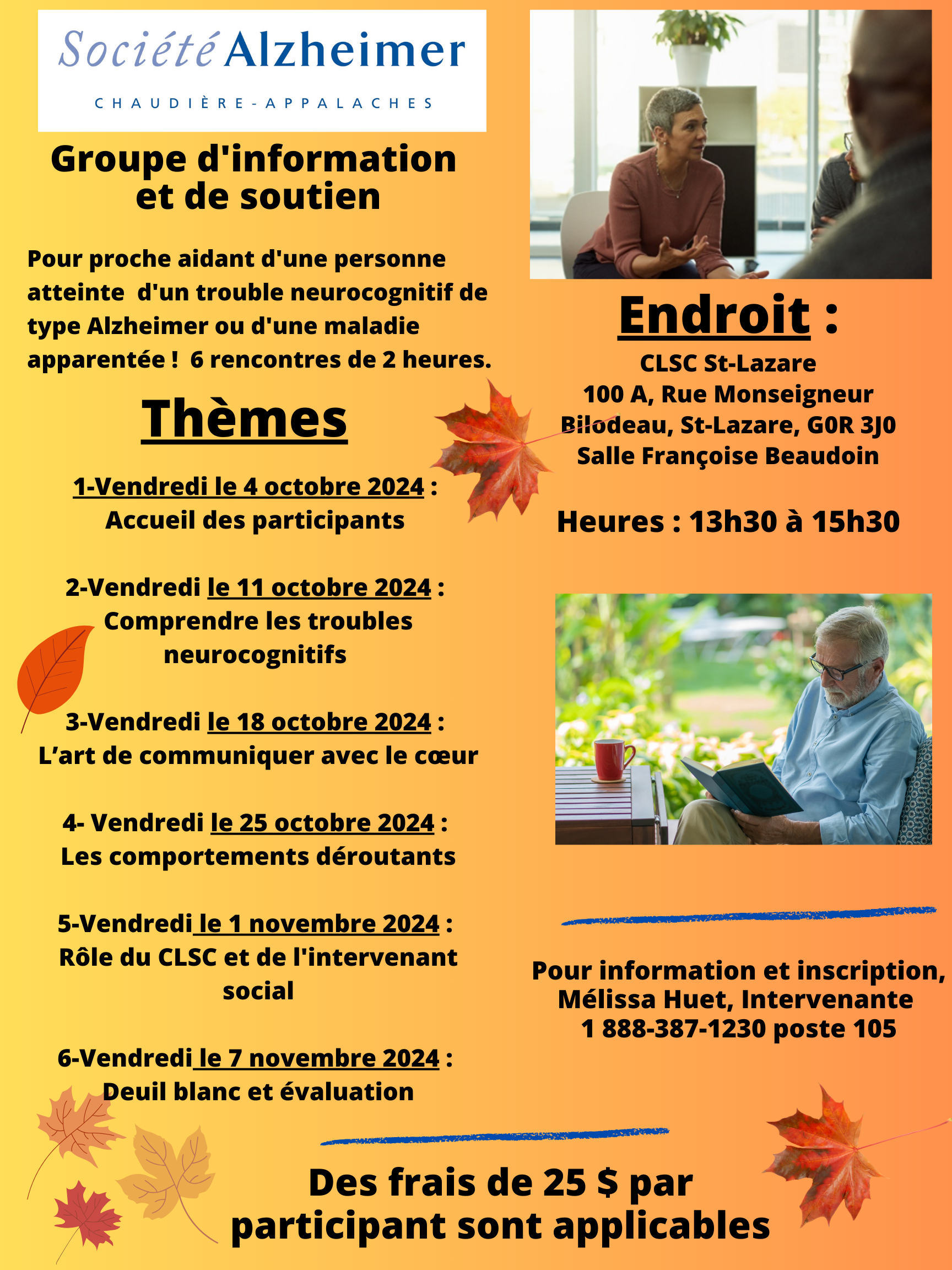 Horaires des groupes d'information et de soutien 2024